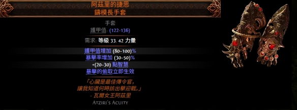 | 手套 | 阿兹里的捷思(绑定) | 瞬间吸血,法系血法师必备 | ![]() |