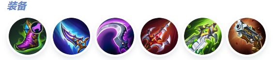 - 装备:川猎人的神奇足具、七海霸主之刃、决胜三叉戟、绝望刀锋、狩猎之击、战灵的咆哮