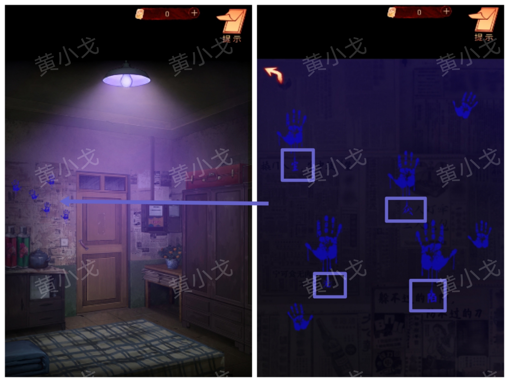 2.点击墙上的手印,获得线索(需要告诉队友)