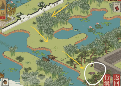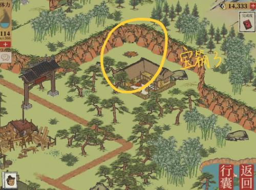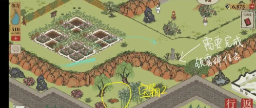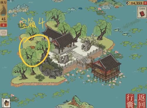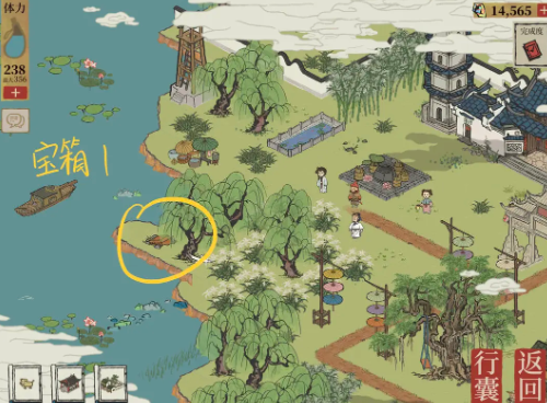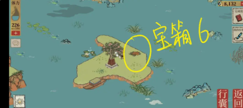 5、宝箱6:雷峰塔右下方找阿牛哥,点他旁边的船就可以去繁花岛,点岛上的合欢树可以获得铜钱和加速票。