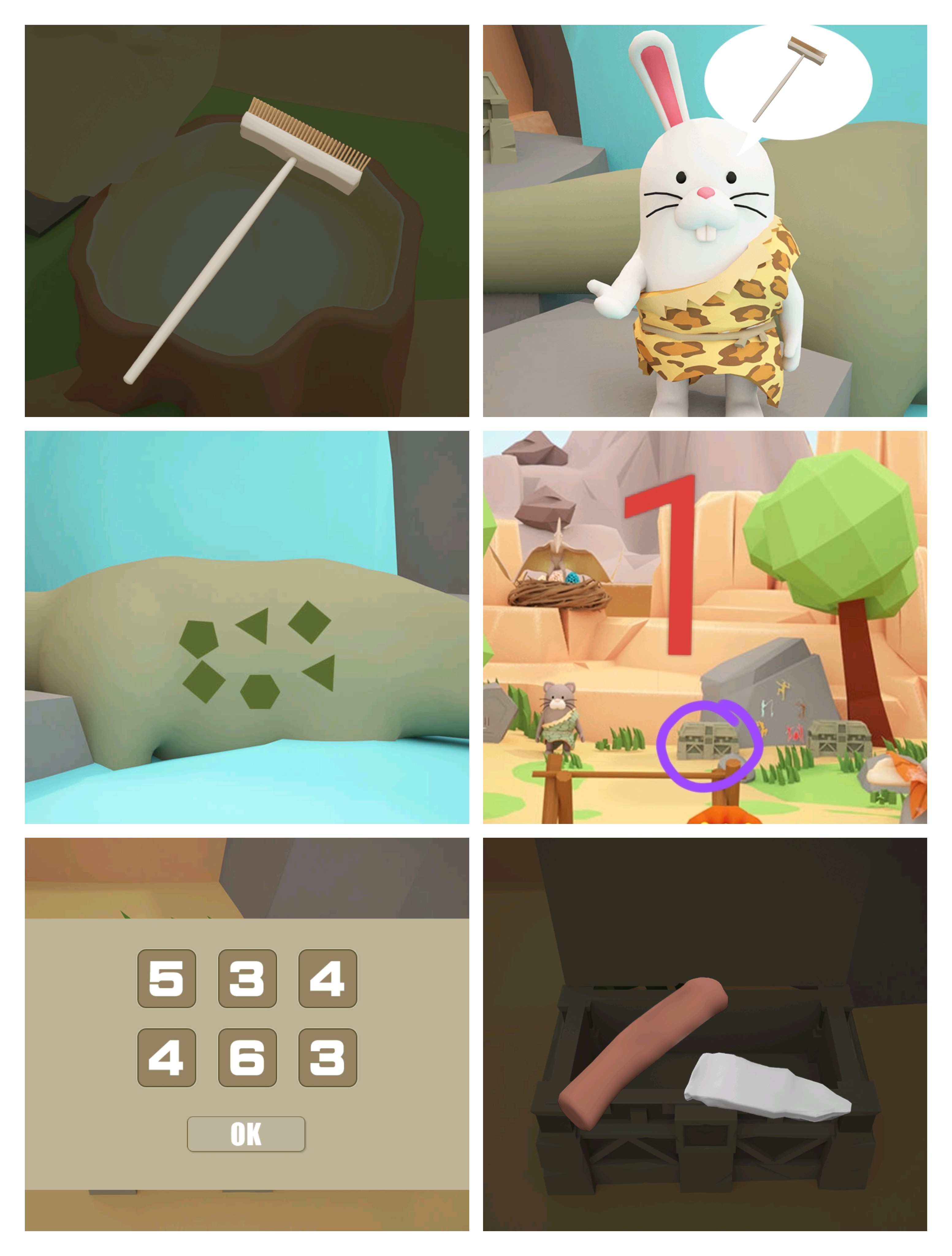 6.根据脚印提示和石头上的画 打开①树桩 得扫把