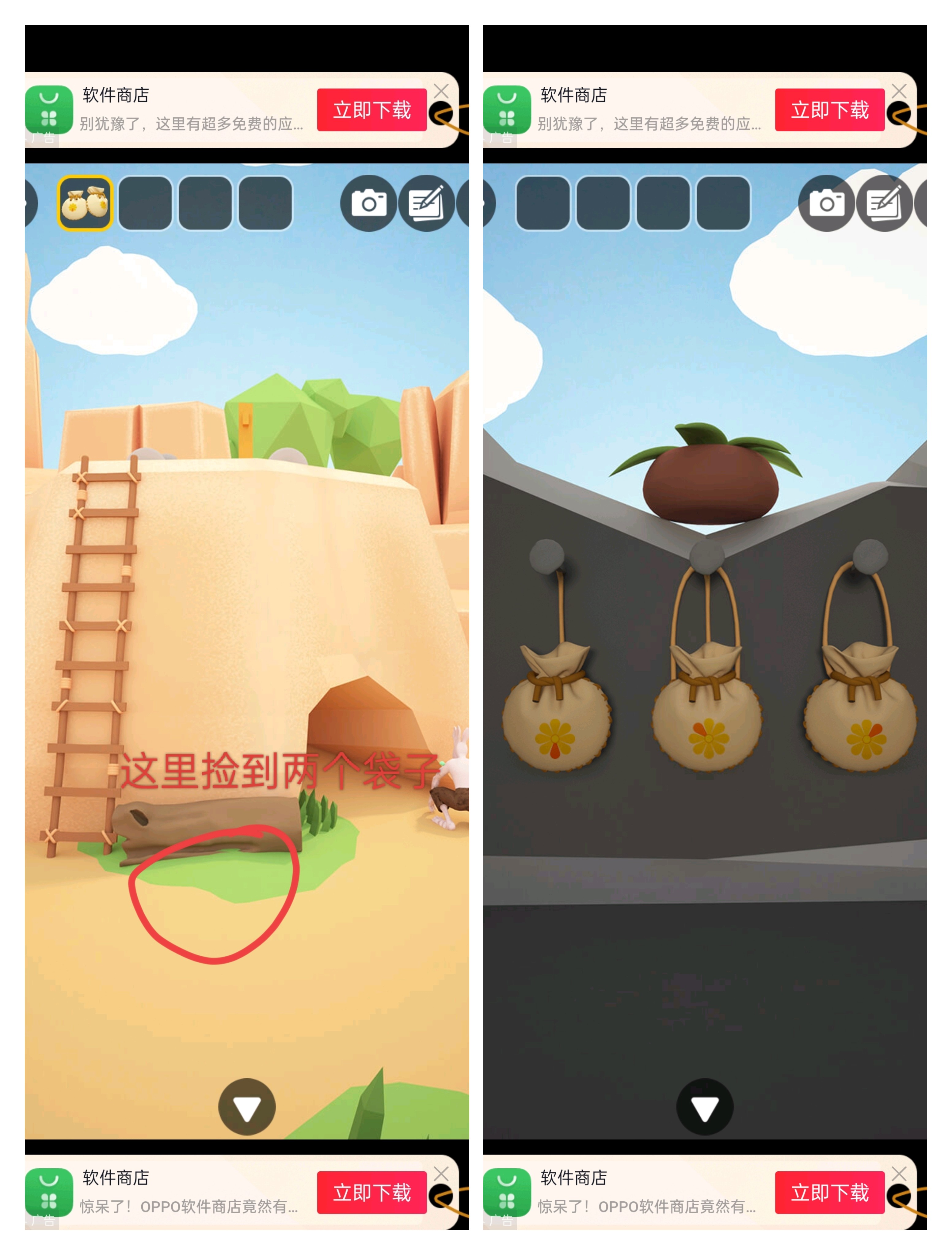 12.将捡到的两个袋子挂到钉子上