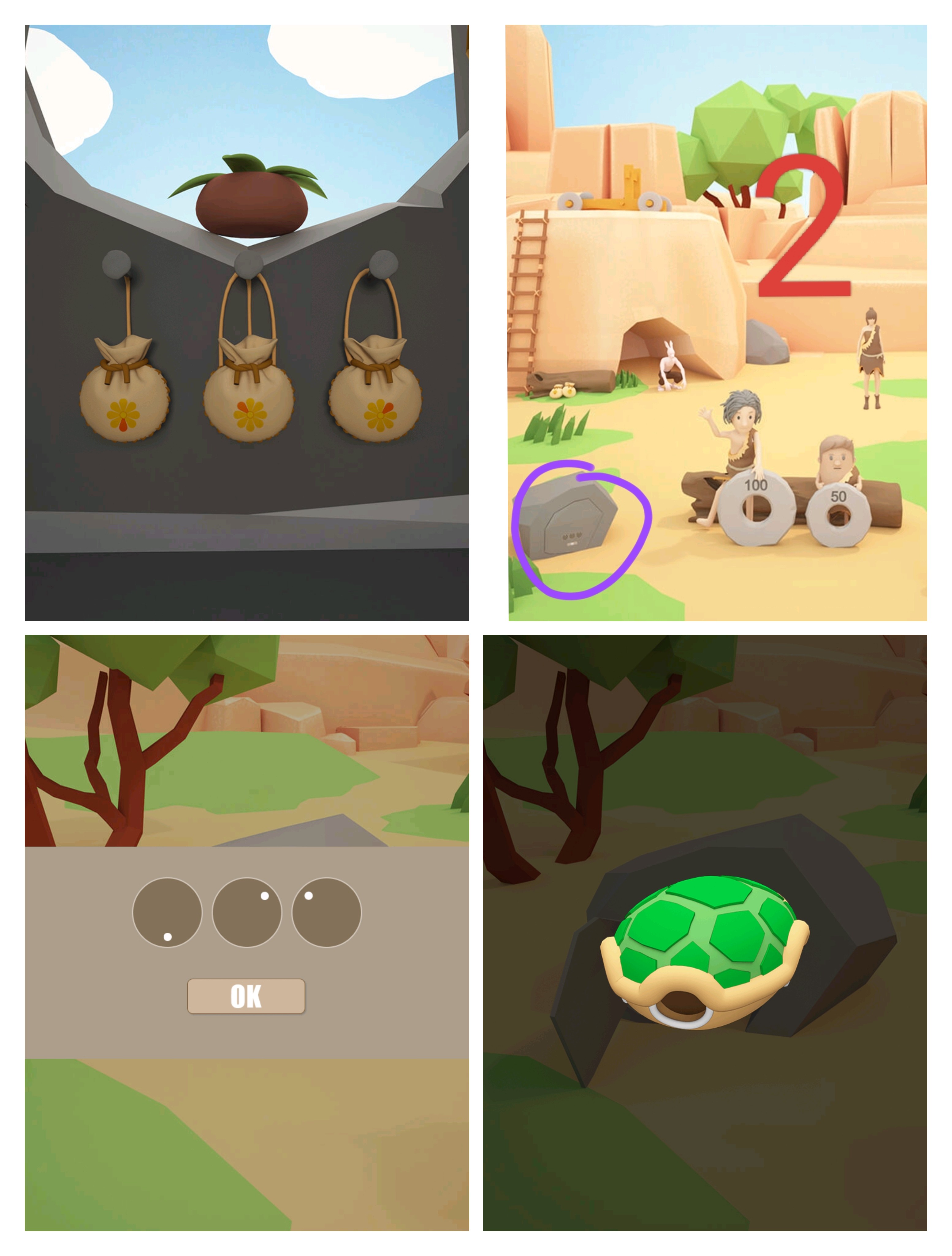 根据袋子上花瓣指示(注意绳子的数量) 打开②石头 得龟壳