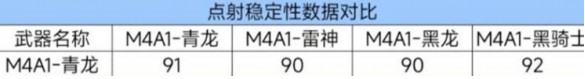 M4A1-黑骑士是最稳定的,其次是M4A1-青龙。M4A1-雷神和M4A1-黑龙的稳定性稍逊一筹。
