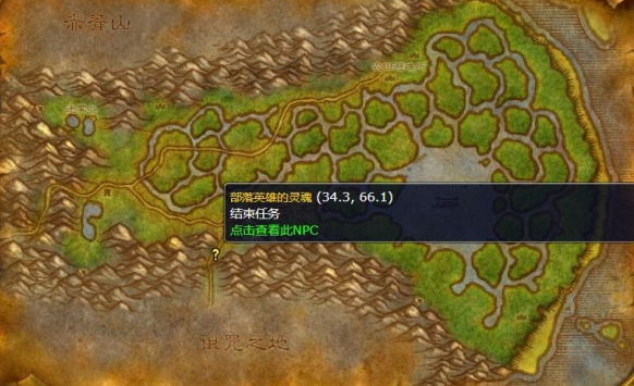诅咒之地坐标(34.3, 66.1),寻找部落英雄的灵魂NPC - 使用