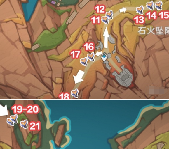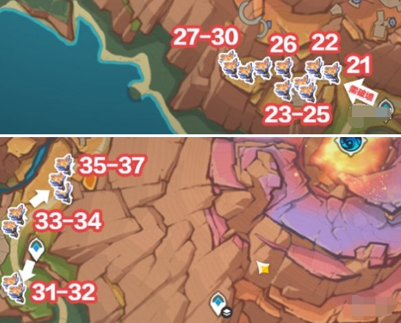 - 从层岩巨渊入口向东侧移动,沿地图标记顺序采集