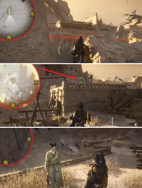 传送至胡杨集传送点后,立即向南侧民居区移动。该区域建筑特色为夯土墙与木制飞檐,需特别注意第三排房屋的屋顶位置。