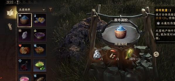 在营地主界面点击烹饪图标,进入食材管理界面。此时需确保背包空间充足,建议预留至少10个空格用于临时存储。
