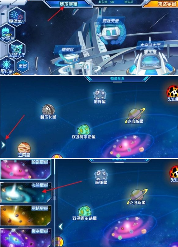 | 星际地图选择 | 确认 赛尔宇宙而非其他分线 | 避免误入 异次元星系 |