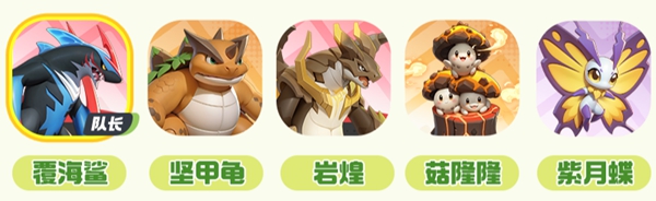 – 阵容:覆海鲨+坚甲龟+岩煌+菇隆隆+紫月蝶