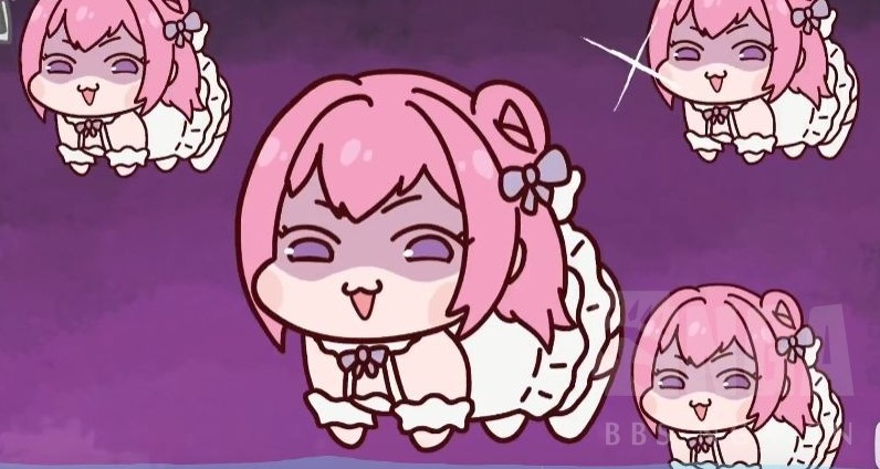 - 形象特征:蜡笔小新式圆脸、四爪着地的粉色犬类