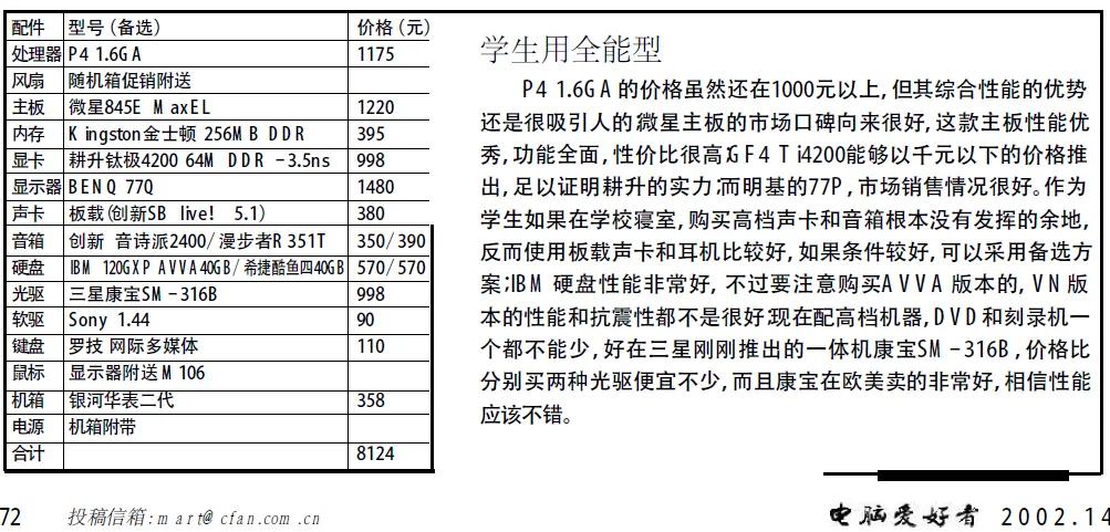 《电脑爱好者》刊载的一期推荐装机图,售价8000元的电脑在当时属实不菲