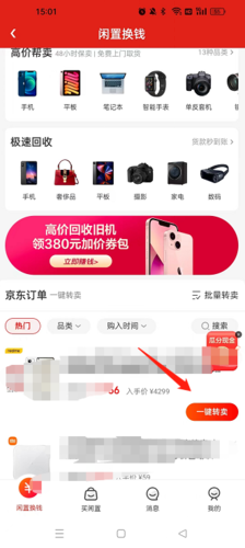 「一键转卖」按钮(如图2) - 系统自动筛选可转卖商品,勾选目标商品进入编辑界面