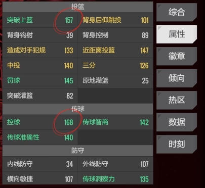 - 突破能力数值高达157,这使得他在面对严密防守时依然能够找到突破口。