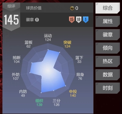 欧文之所以在游戏中使用率极高,很大程度上得益于游戏方在初期的巧妙设定。游戏一开始就会免费赠送这个传奇球员给所有玩家,这意味着几乎每一位玩家都有机会拥有欧文。他的属性数值设定相当出色,从球场位置和数值(身高188、臂展193)来看,欧文主要擅长控球分卫这一位置。